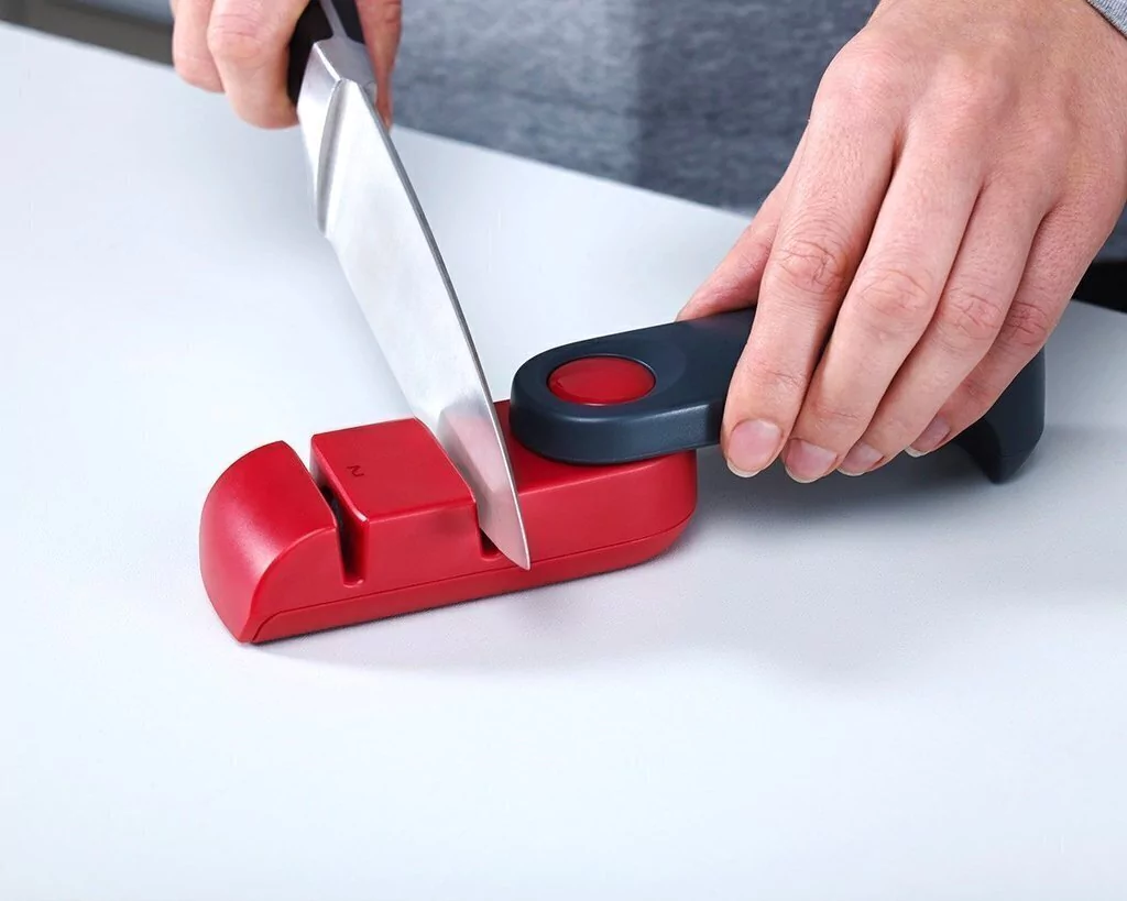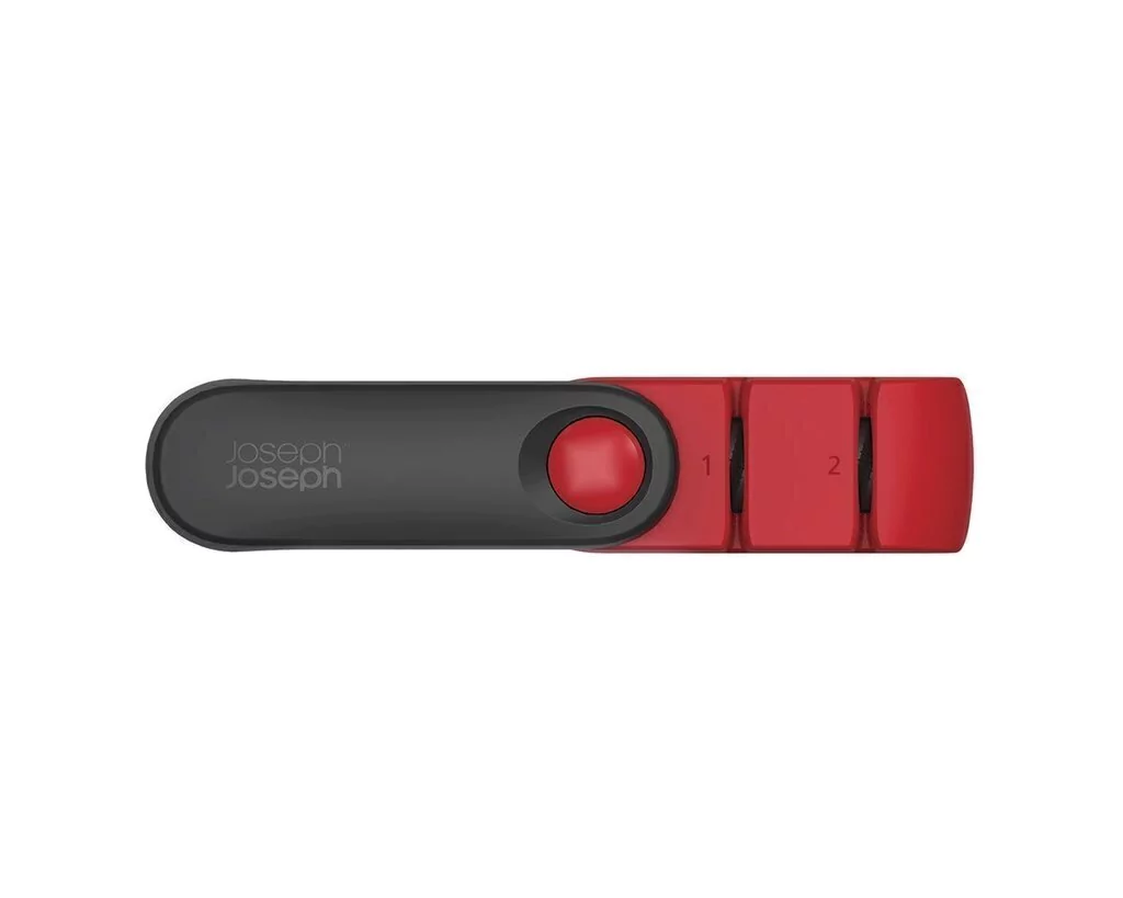 El diseño único y giratorio de este elegante afilador de cuchillos proporciona dos claves características. En primer lugar, cuando se abre, crea un mango seguro y ergonómico para sostener al afilar. Luego, cuando haya terminado, la manija se pliega cuidadosamente nuevamente, creando una unidad compacta que se almacena fácilmente en un cajón.