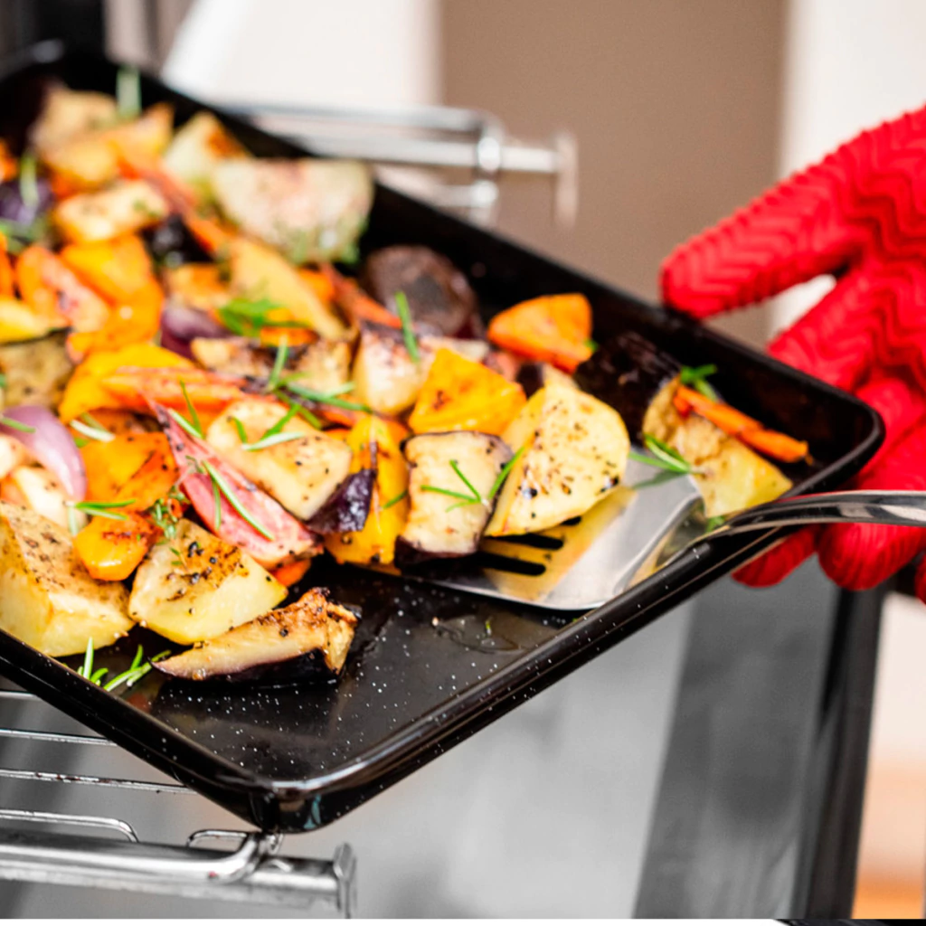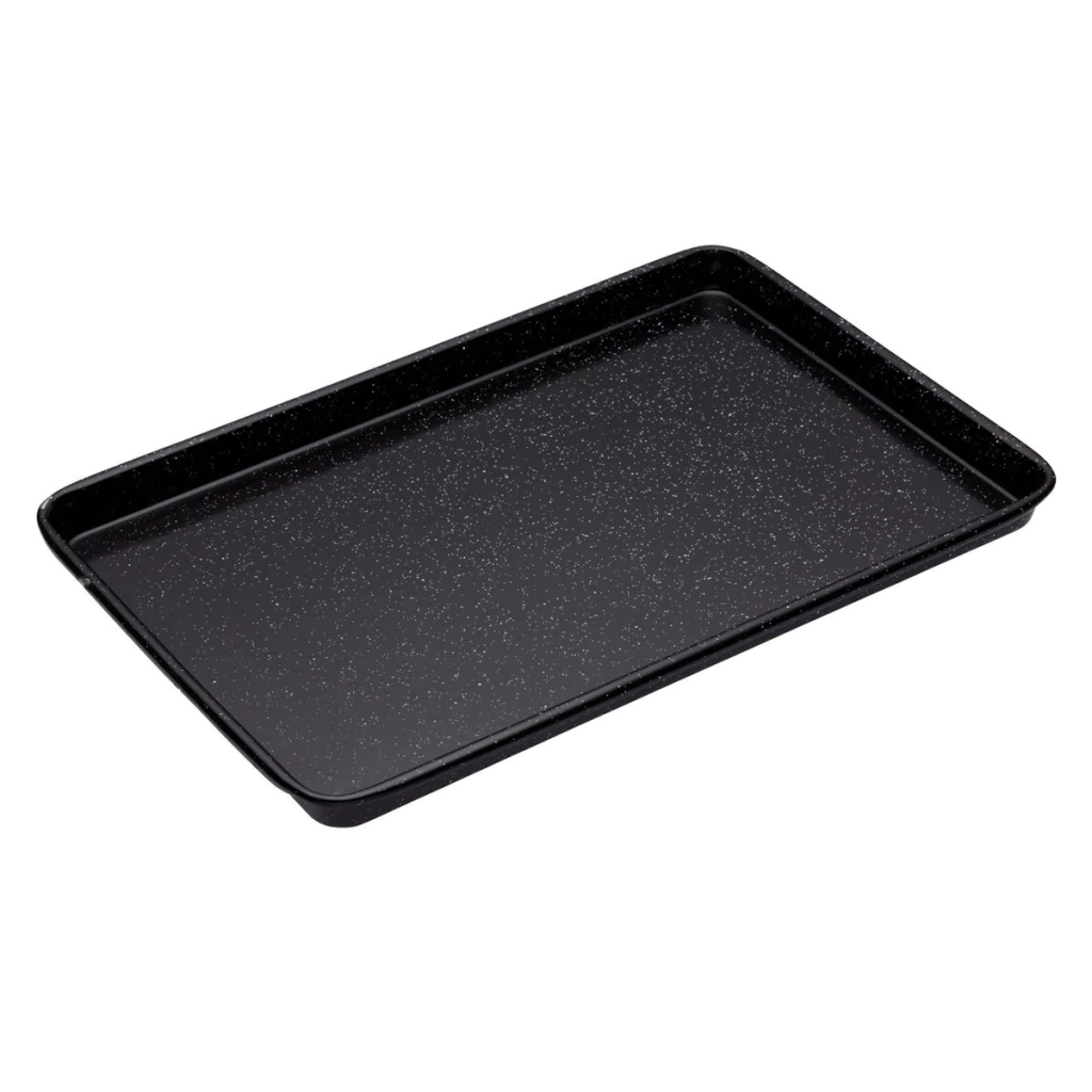 Esta bandeja enlozada MasterClass Professional de 39 x 27 x 2 cm, con excelentes propiedades de conducción, es fantástica para hornear lotes de panecillos, galletas y pasteles. Fabricada en acero de 1 mm de grosor con un revestimiento de esmalte vítreo, es lo suficientemente robusta como para soportar todo tipo de golpes, arañazos y mellas. Esto significa que es apta para su uso en cocinas comerciales. Esta bandeja conduce y distribuye el calor de forma más eficaz, lo que le permite obtener un horneado de calidad superior que le dejará impresionado. Gracias a su resistente revestimiento de esmalte, también puede utilizarla con la mayoría de las fuentes de calor. Deslícela bajo el grill para caramelizar crème brûlées, asar pimientos y tomates secos para una pasta mediterránea, o utilícela para hacer salsa en el fogón. Es apta para inducción y no se raya, por lo que puede utilizar utensilios metálicos sin estropear su acabado de primera calidad. Los bordes de la bandeja están inclinados, por lo que no hay que preocuparse de que la comida se caiga al meter o sacar la bandeja del horno. La comida tampoco se pega. Simplemente libera los alimentos recién horneados, asados o a la parrilla con facilidad. También es increíblemente fácil de limpiar. Puede enjuagar la superficie de esta bandeja de horno de esmalte vítreo con agua tibia o meterla en el lavavajillas, para mantener sus prestaciones durante mucho tiempo. Más características – Fabricada en acero de 1 mm de grosor, robusto y excelente conductor del calor – El revestimiento de esmalte vítreo evita que los alimentos se peguen a la superficie de la bandeja – Suficientemente duradera para su uso en cocinas domésticas o comerciales – Mide 39 x 27 x 2 cm – Apta para una gran variedad de fuentes de calor, como inducción, combustible sólido, cerámica, halógeno, gas, electricidad y horno – No se raya: apta para usar con utensilios metálicos – Apto para frigorífico, congelador y lavavajillas – La colección Profesional de Esmalte Vitrificado de MasterClass incluye un conjunto considerable de utensilios para hornear de alto rendimiento y resistentes que ofrecen excelencia culinaria.
