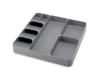El diseño proporciona cuatro compartimentos profundos para sostener cubiertos, un área de utensilios para cuchillos o utensilios de cocina más grandes y un práctico plato de almacenamiento móvil para artículos pequeños y sueltos. Se adapta a una amplia gama de tamaños de cajones desde 29 cm. hasta 48 cm.