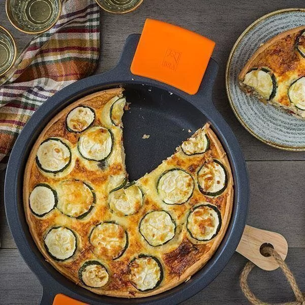 Incluye dos asas de silicona en color naranja para coger la cacerola con comodidad.