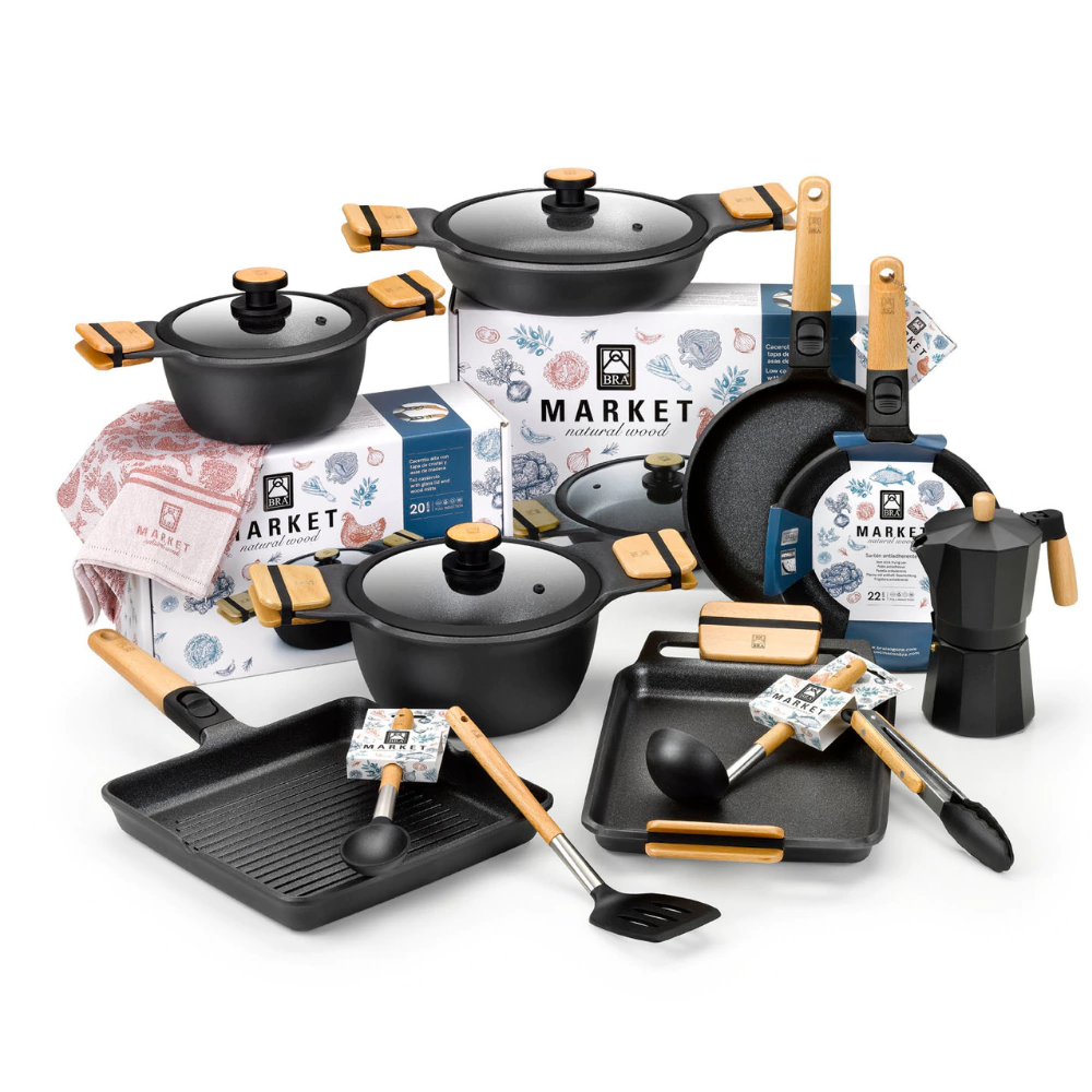 Es una cacerola de lo más versátil, ya que te va a permitir elaborar todo tipo de recetas. Y gracias a su tapa de vidrio, podrás controlar la cocción en todo momento, sin tener que destaparla. Vas a poder preparar desde un risotto o cualquier guiso al fuego, a asar carne de todo tipo o pescado al horno, e incluso recetas dulces deliciosas. Resulta ideal y muy cómoda, tanto para cocinar platos sencillos como unos garbanzos con chorizo, unos fideos a la cazuela o un arroz de verduras, carne o pescado, como para preparar unas sabrosas albóndigas con guisantes, pollo al ajillo, con curry y arroz o con la salsa que más te guste. Además, su versatilidad la hace ideal para que puedas cocinar la bechamel de las croquetas o el relleno de los canelones o la lasaña. Te sorprenderá lo bien que queda cualquier plato en el horno, desde un sencillo y rico pollo con patatas, tu carne asada favorita, una galette de queso y tomate o una quiche de verduras. Es perfecta también para hornear un delicioso bizcocho, asar peras o manzanas e incluso preparar una deliciosa tarta tatin o un clafoutis de cerezas. Gracias a su excelente antiadherente no se pegará nada, lo que hace que su limpieza resulte muy sencilla. Con la cacerola Market, cocinar cualquier plato es una experiencia cómoda, sencilla y muy eficiente.