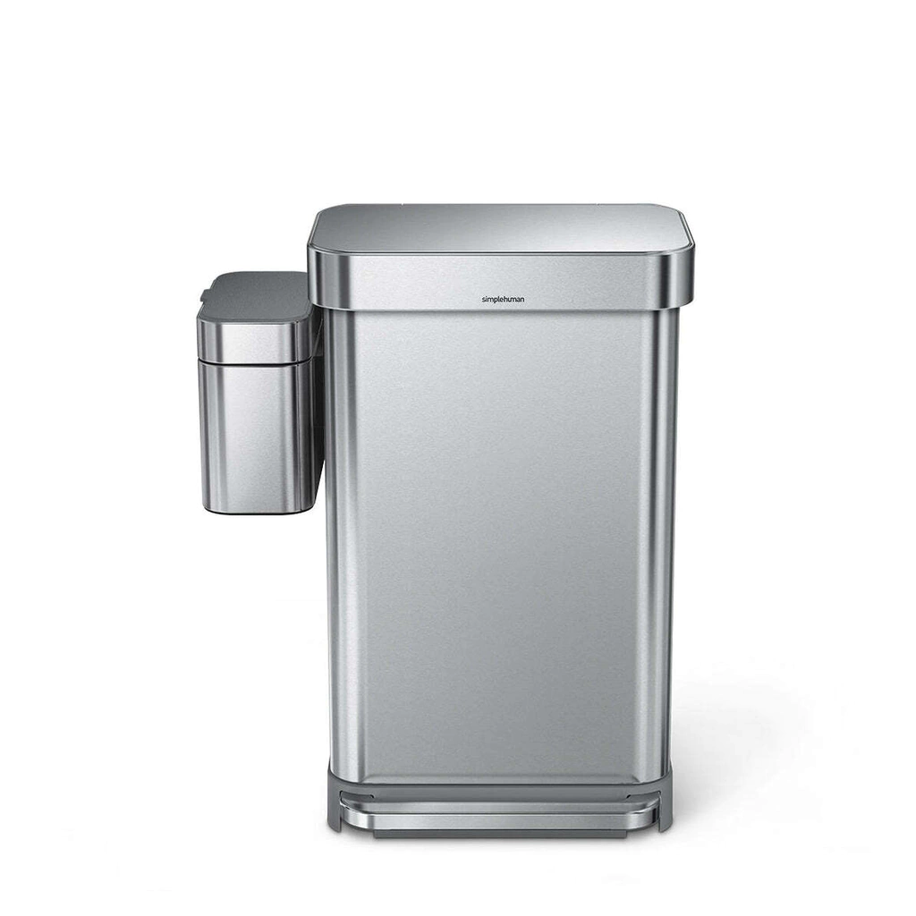 Alimente su jardín y almacene restos de abono de manera fácil y eficiente con nuestro carrito de abono de acero inoxidable que minimiza los olores. Se conecta a una base magnética que cuelga al costado de su bote de basura rectangular o con borde delgado, o puede separarlo para usarlo en el mostrador de su cocina. La tapa de sellado suave permite que los restos de comida respiren, manteniendo el olor bajo control y las plagas alejadas. El balde interior de plástico es removible, por lo que es fácil tirar los desechos o limpiarlo. La superficie de acero inoxidable del carrito está protegida por un revestimiento invisible a prueba de huellas dactilares que también contiene Agion®, un antimicrobiano registrado por la EPA que inhibe el crecimiento de bacterias, hongos, moho y hongos. Se incluye un paquete de 30 bolsas compostables Code Z de ajuste personalizado: las bolsas se ajustan perfectamente al carrito y se pueden tirar junto con los restos de comida, ya que se descomponen por completo.