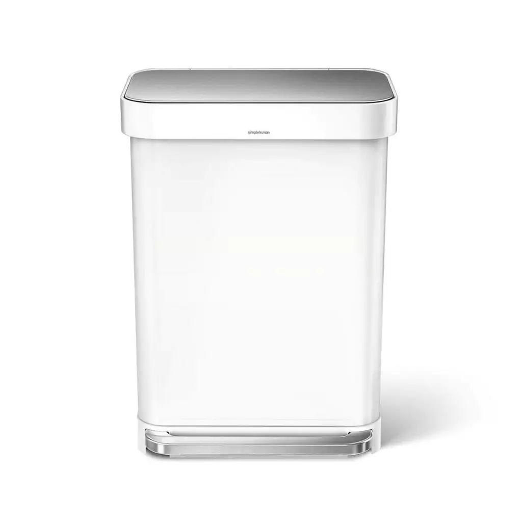 El borde del revestimiento de acero inoxidable sujeta el revestimiento y lo mantiene oculto. Un innovador bolsillo para bolsas almacena y dispensa bolsas desde el interior de la lata para un cambio de bolsa más rápido. Y sin cubo interior, hay más espacio para la basura. El fuerte pedal de acero ancho está diseñado para durar, y nuestra tecnología patentada lid shox garantiza un cierre suave y silencioso en todo momento. La superficie de acero inoxidable de la lata está protegida por una capa invisible a prueba de huellas dactilares que también contiene Agion®, un antimicrobiano registrado en la EPA que inhibe el crecimiento de bacterias, hongos y hongos (solo modelo cepillado). Nuestro forro de ajuste personalizado Code Q se adapta perfectamente a esta lata: no se amontona ni se desliza para una experiencia de basura más limpia. Los paquetes de recarga de bolsas se almacenan fácilmente en el bolsillo de la bolsa de esta lata.