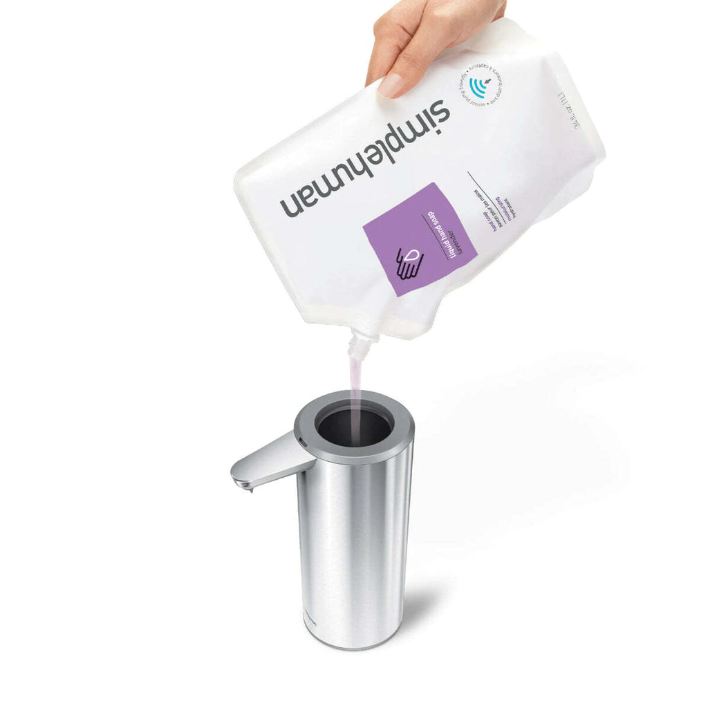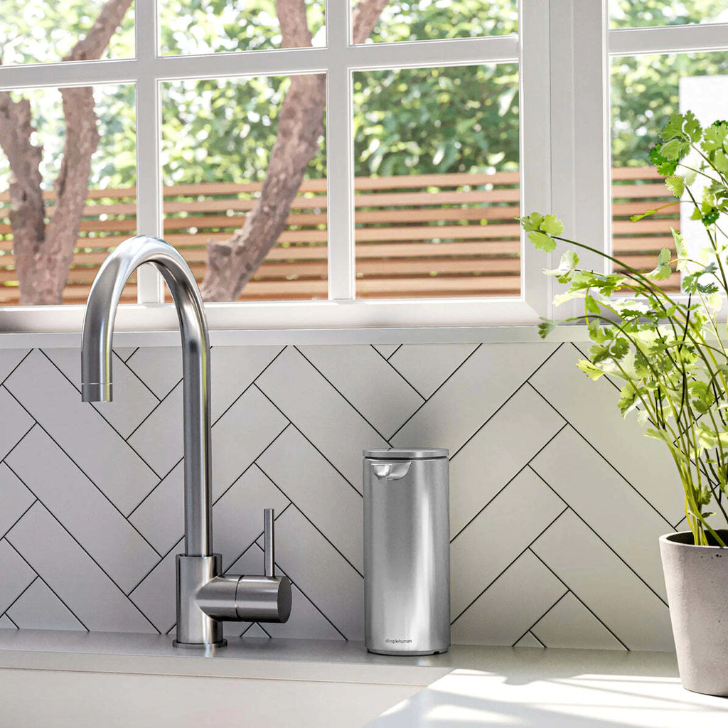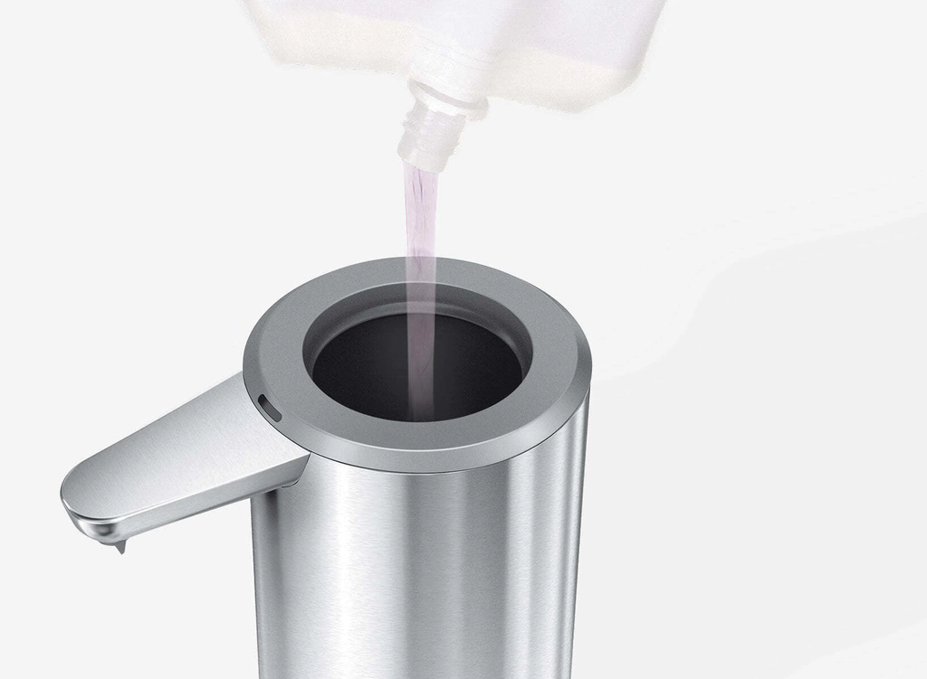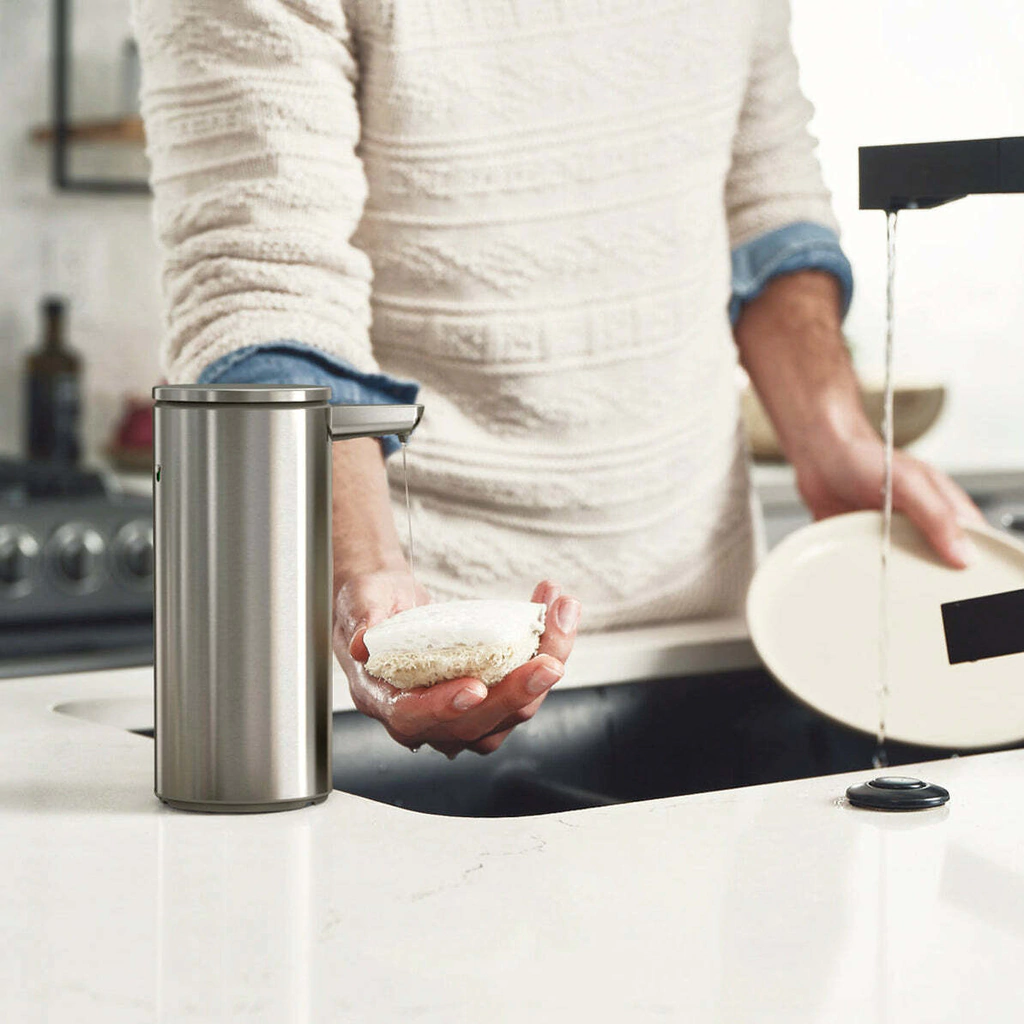 La herramienta perfecta para dispensar jabón sin contacto y sin dejar gérmenes. Optimizado para un lavado de platos eficiente y sin esfuerzo con un carrito de acero inoxidable a juego que se adapta perfectamente a la bomba y almacena una esponja para que siempre esté al alcance de su mano. Contiene un 50 % más de jabón que nuestra bomba estándar, por lo que lo rellenará con menos frecuencia. La bomba de tubería a prueba de obstrucciones garantiza un flujo preciso y constante, y la válvula de silicona evita los goteos desordenados. Para controlar la cantidad de jabón deseada, puede colocar su mano cerca del sensor para obtener un poco de jabón y más lejos para obtener más. Una amplia abertura de recarga hace que las recargas sean rápidas y fáciles, y hay un código QR debajo de la tapa para que pueda volver a pedir jabón en un instante. También es resistente al agua para una fácil limpieza. Recargable con el cargador inalámbrico incluido, y una carga dura hasta 8 meses. Use jabón simplehuman para un rendimiento óptimo de la bomba. También funciona con desinfectante de manos.
