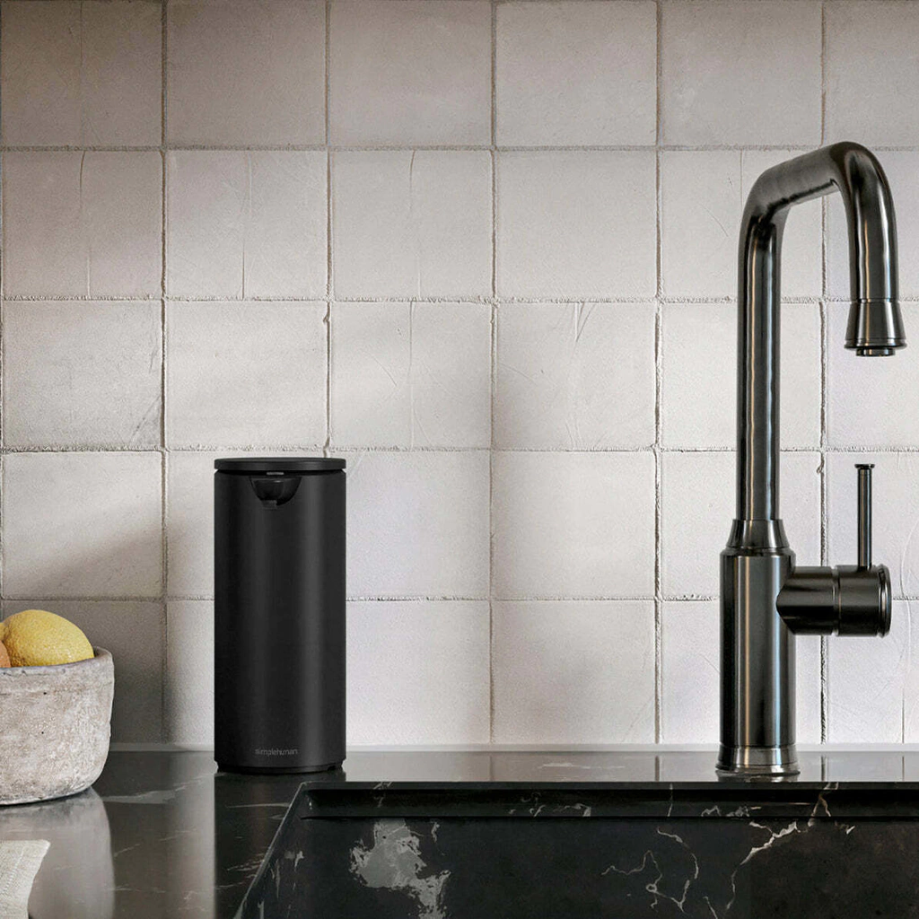 La herramienta perfecta para dispensar jabón sin contacto y sin dejar gérmenes. Optimizado para un lavado de platos eficiente y sin esfuerzo con un carrito de acero inoxidable a juego que se adapta perfectamente a la bomba y almacena una esponja para que siempre esté al alcance de su mano. Contiene un 50 % más de jabón que nuestra bomba estándar, por lo que lo rellenará con menos frecuencia. La bomba de tubería a prueba de obstrucciones garantiza un flujo preciso y constante, y la válvula de silicona evita los goteos desordenados. Para controlar la cantidad de jabón deseada, puede colocar su mano cerca del sensor para obtener un poco de jabón y más lejos para obtener más. Una amplia abertura de recarga hace que las recargas sean rápidas y fáciles, y hay un código QR debajo de la tapa para que pueda volver a pedir jabón en un instante. También es resistente al agua para una fácil limpieza. Recargable con el cargador inalámbrico incluido, y una carga dura hasta 8 meses. Use jabón simplehuman para un rendimiento óptimo de la bomba. También funciona con desinfectante de manos.
