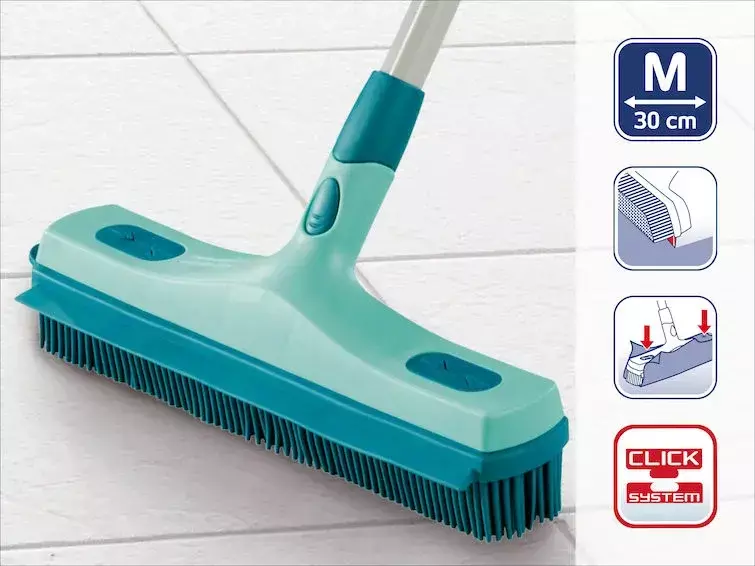 El accesorio de escoba de goma de Leifheit es un verdadero todoterreno y es adecuado incluso para la limpieza interior y exterior. Las higiénicas cerdas supra del accesorio de escoba de goma eliminan de forma fiable la suciedad, el pelo y el polvo sin enredarse.