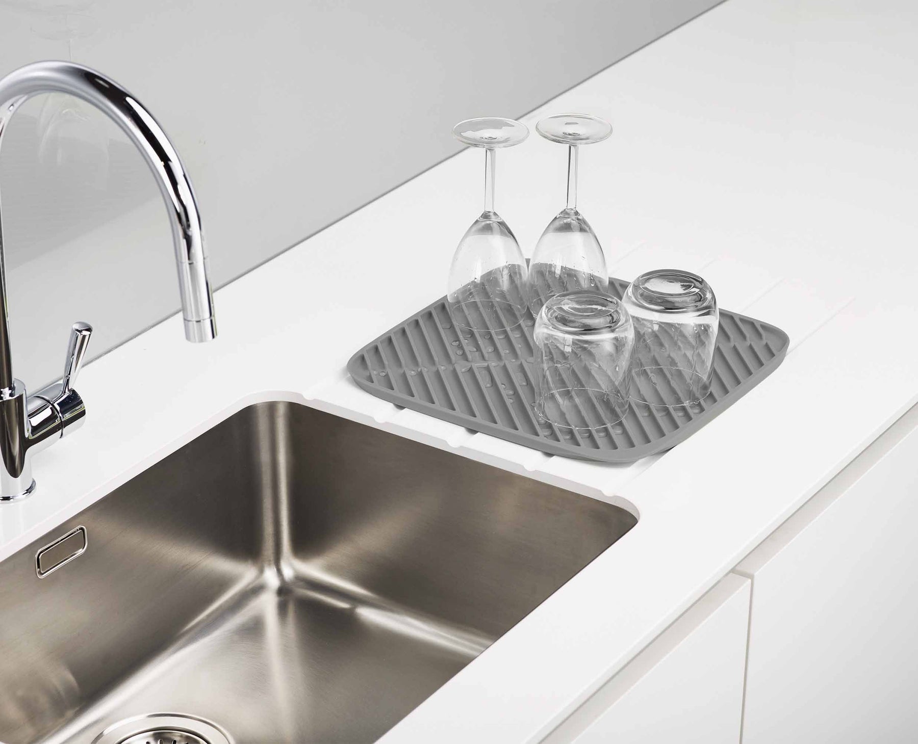 Estas prácticas alfombrillas proporcionan una superficie de goma suave para drenar una variedad de artículos y son perfectas para crear espacio de drenaje adicional cuando sea necesario.