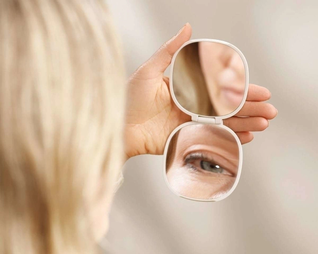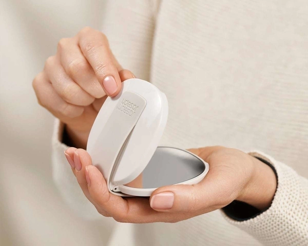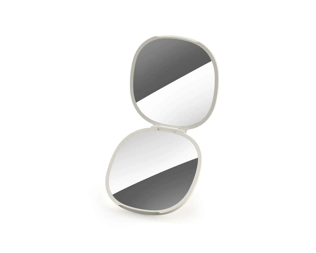 Controla y perfecciona tu maquillaje sobre la marcha con este elegante y compacto espejo. Cuenta con un espejo estándar que le brinda una vista sin distorsiones de todo su rostro, además de un espejo de aumento de 3x para trabajar con detalles finos, como aplicar rímel. Una correa de silicona suave proporciona un práctico lazo para los dedos para sujetar el espejo de forma segura cuando se usa y también un lugar conveniente para guardar pequeños elementos esenciales de maquillaje, como un lápiz delineador de ojos, lápiz labial o rímel. Finalmente, un cierre magnético mantiene el espejo bien cerrado en tu bolso.