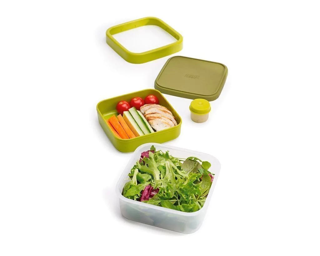 GoEat™ es una innovadora gama de productos diseñados para que comer comida casera fuera de casa sea fácil y cómodo. La gama incluye diferentes fiambreras que resultan perfectas para transportar bocadillos, ensaladas, sopas o aperitivos. Después de comer, cada elemento se puede reducir de tamaño de forma inteligente para ahorrar espacio en su bolso para el regreso a casa. La gama GoEat™ también incluye accesorios como un juego de cubiertos compacto para una mayor comodidad.