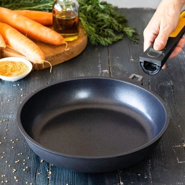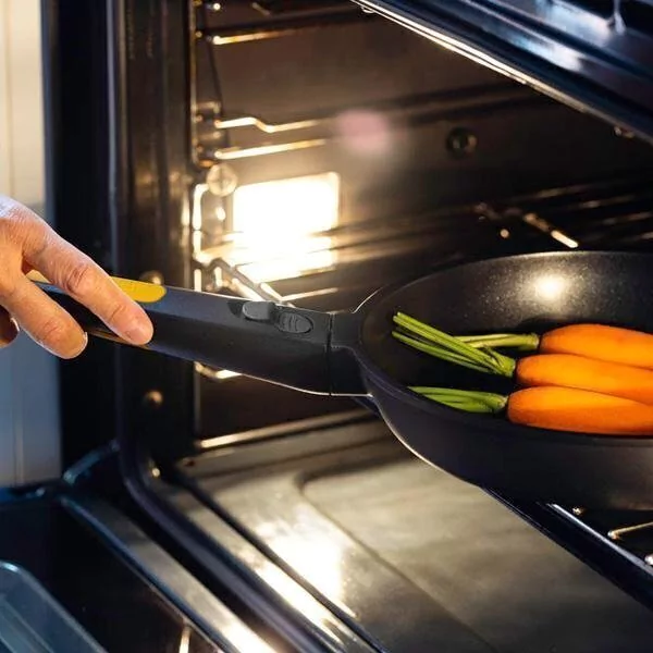 La sartén Fast Click reúne unos resultados excelentes de cocción con una gran practicidad gracias a su mango desmontable que no solo te ahorra espacio sino que la hace apta para el horno. Todo ello en un solo movimiento: verás que resulta muy fácil de poner y quitar.