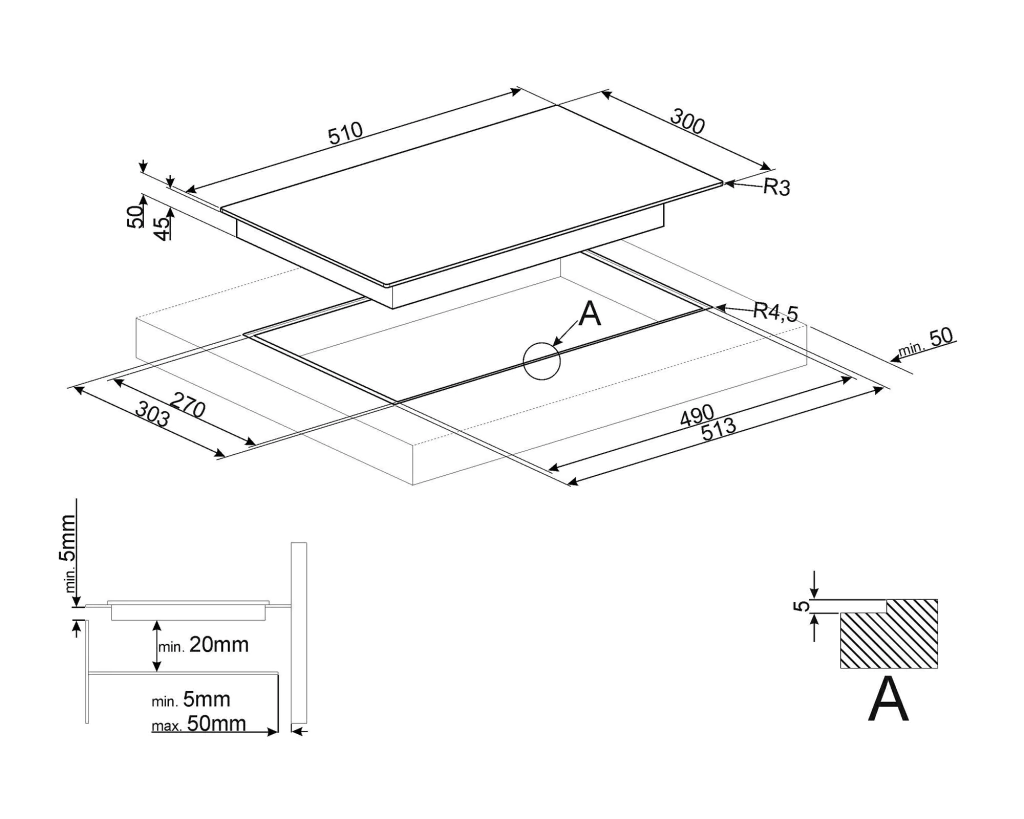 • Color negro, acabado de vidrio cerámico.